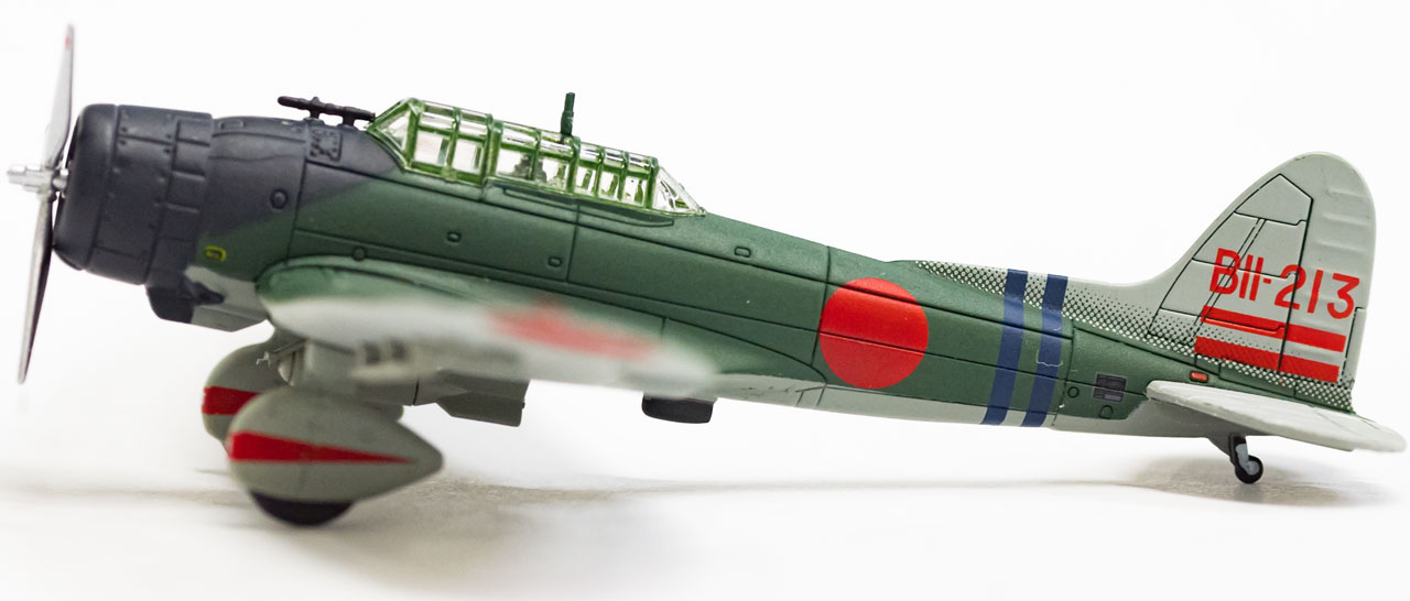 スケール1/144で全長7cm程というコンパクトな本体サイズながら、細部のディティールまでこだわった完成品ダイキャストモデル。モデルとなったのは、空母飛龍艦載機、愛知航空機製造の九九式艦上爆撃機。