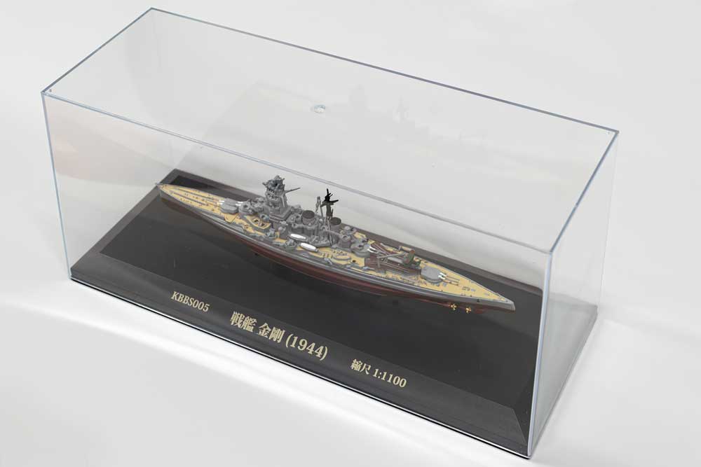 改装後の戦艦金剛を1/1100スケール(全長20cmほど)の、コンパクトな本体サイズで再現に挑戦。名前の入った台座と、専用ケースがついていますので、ホコリからもしっかりガード。
