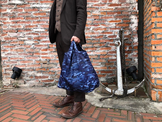 海上自衛隊デジタル青迷彩柄のエコバッグ。