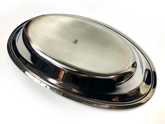 昭和54年より自衛隊に納入されている、楕円形のステンレス製カレー皿。